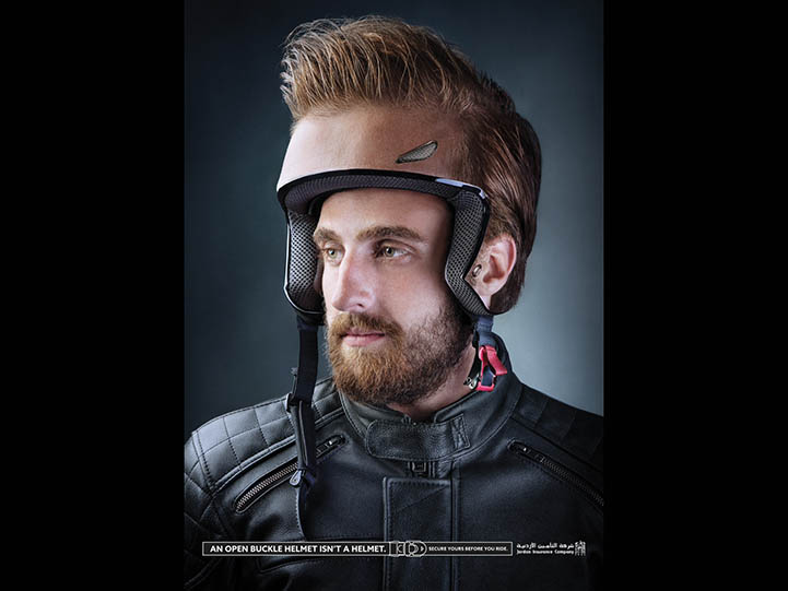 AdvertisementShortlisted by the Ad Stars 2016 Australian Advertising Awards through a strict screening process by 215 judges from 70 countries was a unique campaign raising awareness to road safety practices of motorcyclists in Jordan. Despite the well-maintained roads and clear signage, a significant number of local motorcycle drivers see little reason to wear a helmet but do so to avoid being fined by traffic police. However, the same group deliberately leave the buckle unfastened, which presents serious threat in case of a collision. To highlight the importance of safety, the Jordan Insurance Company commissioned this very catchy ad to remind the target audience that a helmet is not an aesthetical device, rather a safety precaution. The ad captures the message beautifully by illustrating that an unbuckled helmet leaves the head of its wearer fully exposed!