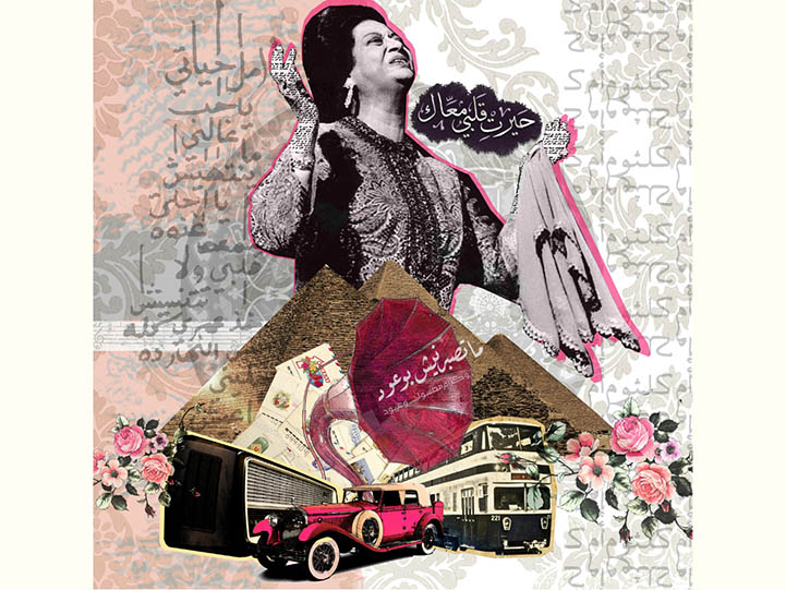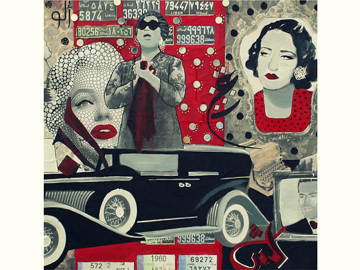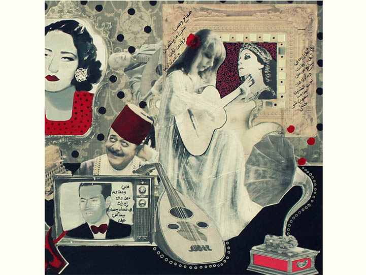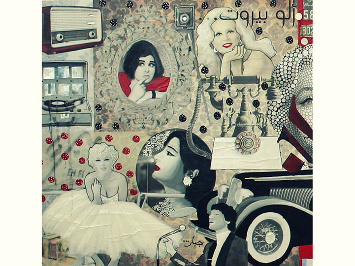 The spirit of Beirut that I taste when collaging a painting is the most reinforcing power for me to keep going. It is just so much fun! I search for places where I find my objects 'little treasures' like: old film posters, stamps, old postcards, rare photographs... etc. I love to give them a new life a new story and beginning, and I do that through art.
