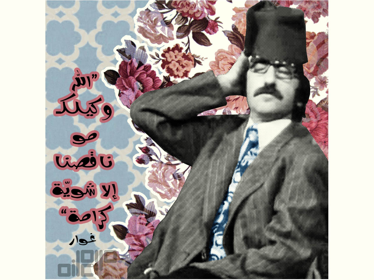 Creating a story through mixed media collage by following this strategy 'what’s hidden is equally important as what is visible'. For example when I paint Naji Al-Ali (Palestinian caricaturist), I paint Handala (his main character) behind him, or collage a map of Palestine with some orange and olive trees. These elements may be almost invisible to the viewer, but it’s there and it affects the rest of the painting. This is how I complete the idea and tell my story.