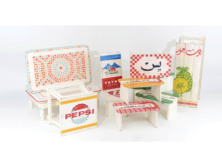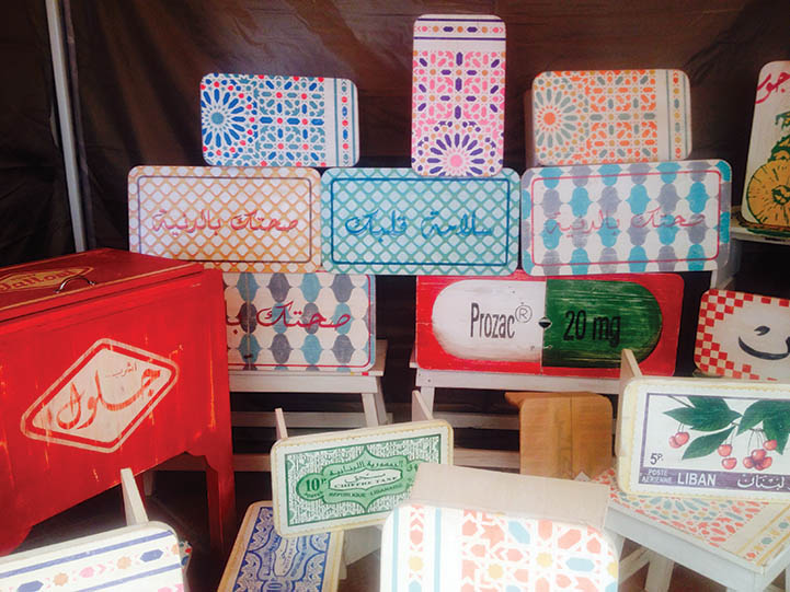 My typical customer is the person of my generation who had the same childhood and relates the same way I do to all these brands and objects. I also make sure that even though they are hand painted, they remain at a reasonable price so they are affordable to all. They also happen to be practical furniture. For example, my revisited tabliyeh is ideal by the bed and can be placed in the lap and used as a small table for the laptop or a cosy breakfast in bed.